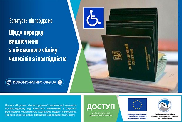 Рубрика: Запитуєте – відповідаємо Враховуючи ситуацію в країні, документ, який підтверджує виключення особи з військового обліку, зараз є не просто черговим папірцем, а вкрай важливим… Читати далі »Щодо порядку виключення з військового обліку чоловіків з інвалідністю