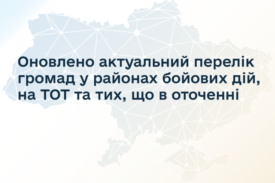 Мінреінтеграції: Оновлено актуальний перелік громад у районах бойових дій, на ТОТ і тих, що в оточенні