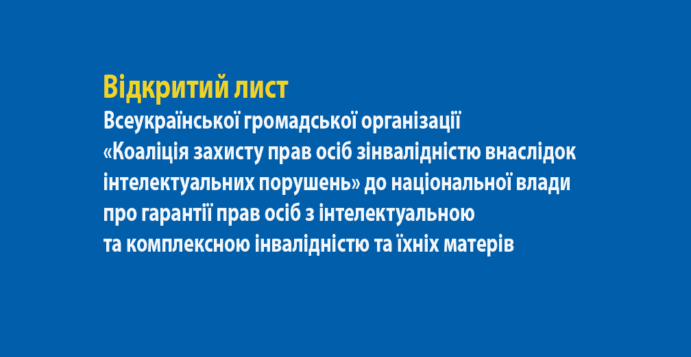Відкритий лист Всеукраїнської громадської організації «Коаліція захисту прав осіб з інвалідністю внаслідок інтелектуальних порушень» до національної влади про гарантії прав осіб з інтелектуальною та комплексною інвалідністю та їхніх матерів